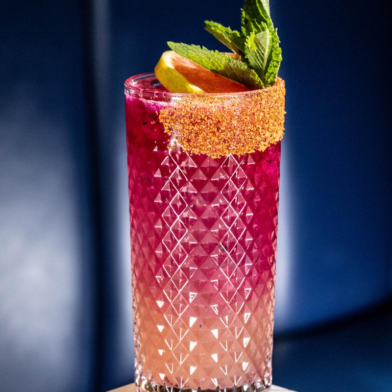 Fresh dragon fruit, Mango, Lime, Dulce Vida silver tequila, Prosecco