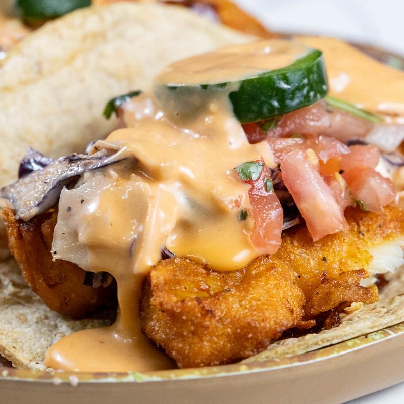 Battered cod, chipotle slaw, pico de gallo, jalapeno slices