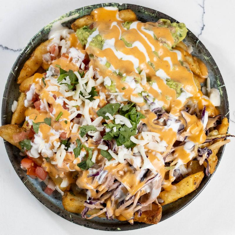 Oaxaca cheese, pico de gallo, fresh cream, guacamole, chipotle crema. Add on pernil, pulled chicken, birria or steak for an additional fee